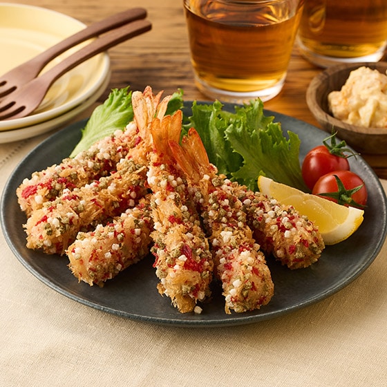 ■ぶぶあられを使用した彩り鮮やかなえびフライ!