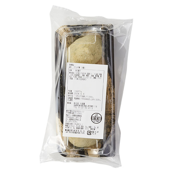 | 原材料 | もち粉(もち米(国産、タイ産))、つぶ餡(砂糖、小豆、水飴、食塩)、砂糖、麦芽糖、青豆きな粉、でん粉/甘味料(トレハロース)、加工デンプン、酵素、クチナシ色素、(一部に小麦・大豆・やまいもを含む) |