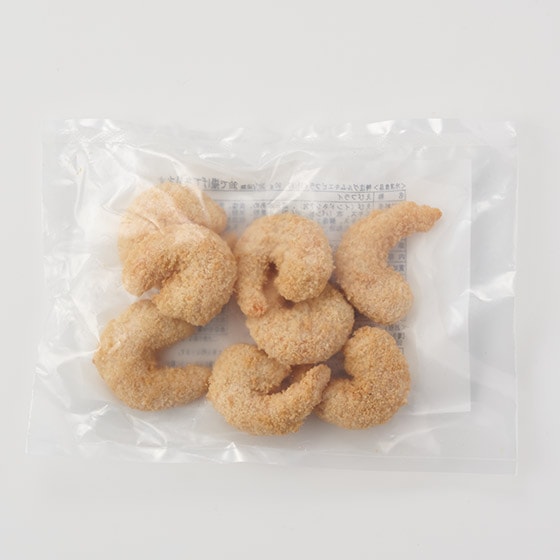 | 原材料 | 原材料名:えび(インドネシア産)、還元水あめ、食塩、魚?パウダー、酵母エキス、衣(パン粉、でん粉、小麦粉、米粉、砂糖、食塩、かつお節エキス、酵母エキス、香辛料、鶏卵、脱脂粉乳、大豆粉)、揚げ油(なたね油、パーム油)、(一部に卵・乳成分・小麦・えび・大豆を含む) 添加物:増粘剤(こんにゃく芋抽出物)、pH調整剤 |