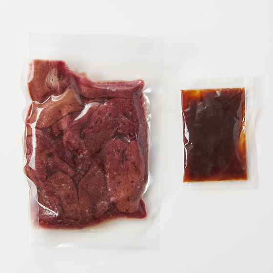 | 原材料 | 下味付豚レバー〔豚レバー(国産)、食塩/クロレラエキス〕、タレ〔しょうゆ(小麦・大豆を含む)、砂糖、清酒、甜面醤(ごまを含む)、しょうが、食塩、オイスターエキス、酵母エキス/増粘剤(加工デンプン)、アルコール〕 |