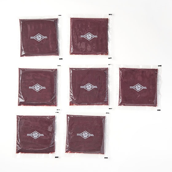 | 原材料 | アサイーピューレ(ブラジル製造)、バナナピューレ、濃縮ぶどう果汁、濃縮いちご果汁、パッションフルーツ果汁 |