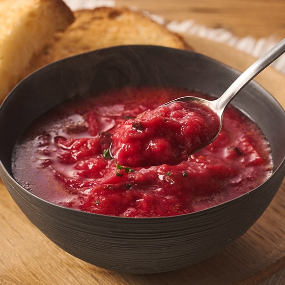 | 原材料 | 野菜(ビーツ(北海道)、玉ねぎ、にんじん、キャベツ、セロリ、にんにく、しょうが)、トマト・トマトピューレー、植物油脂、小麦粉、トマトペースト、チキンエキス、ワイン、食塩、チキンブイヨン、酵母エキス、三温糖、香辛料、(一部に小麦・鶏肉を含む) |