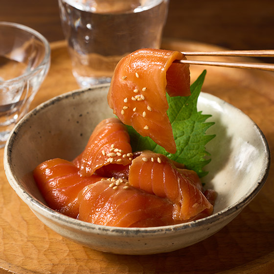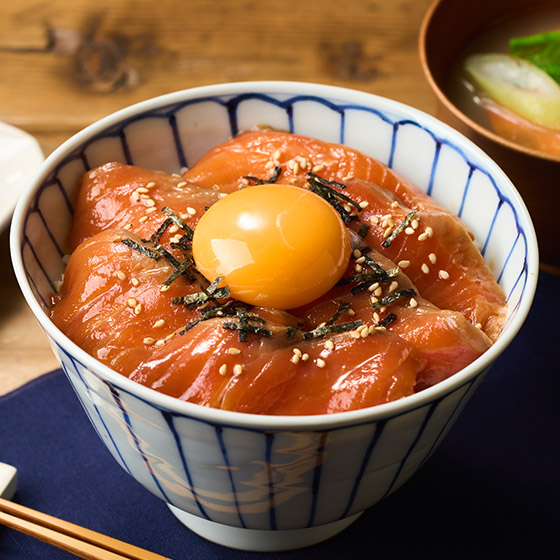 国産お刺身サーモンの漬け丼(胡麻・海苔付き)