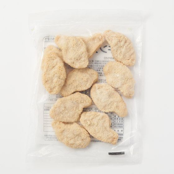 原材料 | 鶏肉(国産)、鶏皮(国産)、粉末状植物性たんぱく(大豆を含む)、パン粉(乳成分を含む)、食塩、砂糖、香辛料、衣(パン粉、小麦粉、米粉、でんぷん、粉末状植物性たんぱく、植物油脂)/重曹、増粘多糖類、加工デンプン、揚げ油(なたね油、パーム油) |