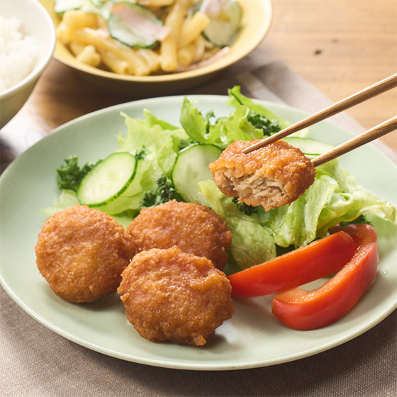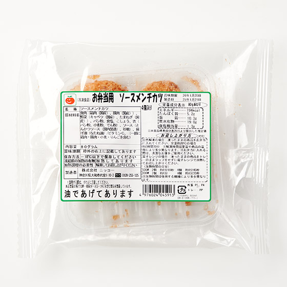 | 原材料 | 食肉(鶏肉(国産)、豚肉(国産))、野菜(キャベツ(国産)、たまねぎ(国産))、パン粉、食塩、こしょう、衣(パン粉、小麦粉、でん粉)、ソース(とんかつソース(国内製造)、砂糖)、揚げ油(なたね油)/ビタミンC、(一部に鶏肉・豚肉・小麦・りんごを含む) |