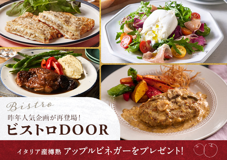 【応募方法】「ビストロDOOR」ページ内の商品を3,240円(税込)以上ご購入かつ、「抽選応募チケット」をカートに入れてご注文を完了させてください。