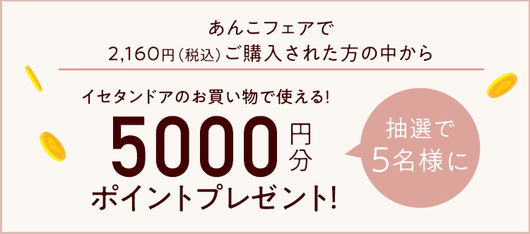 「あんこフェア」特集内で2,160円(税込)以上の商品をご購入いただき、下記の[抽選応募チケット]をカートに入れてご注文を完了してください。