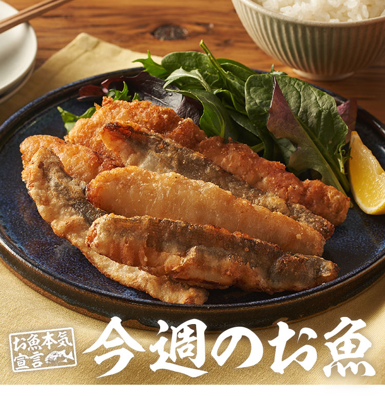 富山県産の赤カマスを竜田揚げにしました。カマスの身は薄いので、冷凍状態からフライパンに少し多めにひいた油で揚げ焼きするだけで、おいしくお召し上がりいただけます。柑橘との相性も良いので、是非レモンを添えてお召し上がりください。