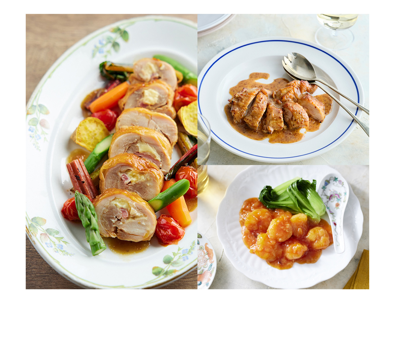 濃厚なチーズソース・ベーコンを鶏肉で包んでオーブンでじっくり焼き上げ、シャリアピンソースで仕上げました。柔らかくてジューシー、ご飯のおかずからワインのお供まで、幅広くご利用いただける一品です。