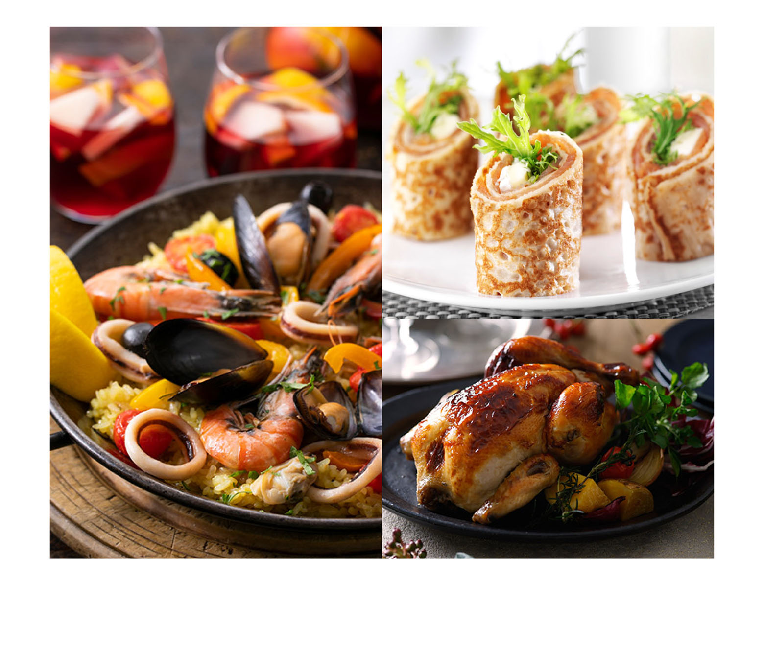 エビ、イカ、ムール貝など魚介をたっぷり使った見た目も豪華なパエリアは、魚介のエキスがお米にしっかり吸収されて深みのある味に。パプリカやアスパラ、トマトなどカラフルな野菜を加えると一層華やかに仕上がります。